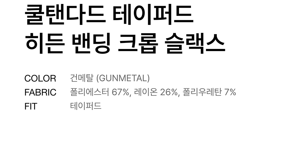 [쿨탠다드] 테이퍼드 히든 밴딩 크롭 슬랙스 [건메탈]
