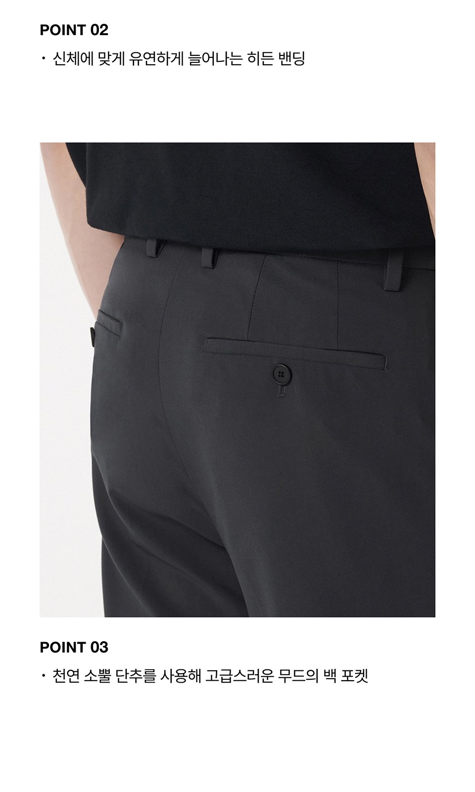 릴렉스드 테이퍼드 히든 밴딩 크롭 슬랙스 [블랙]