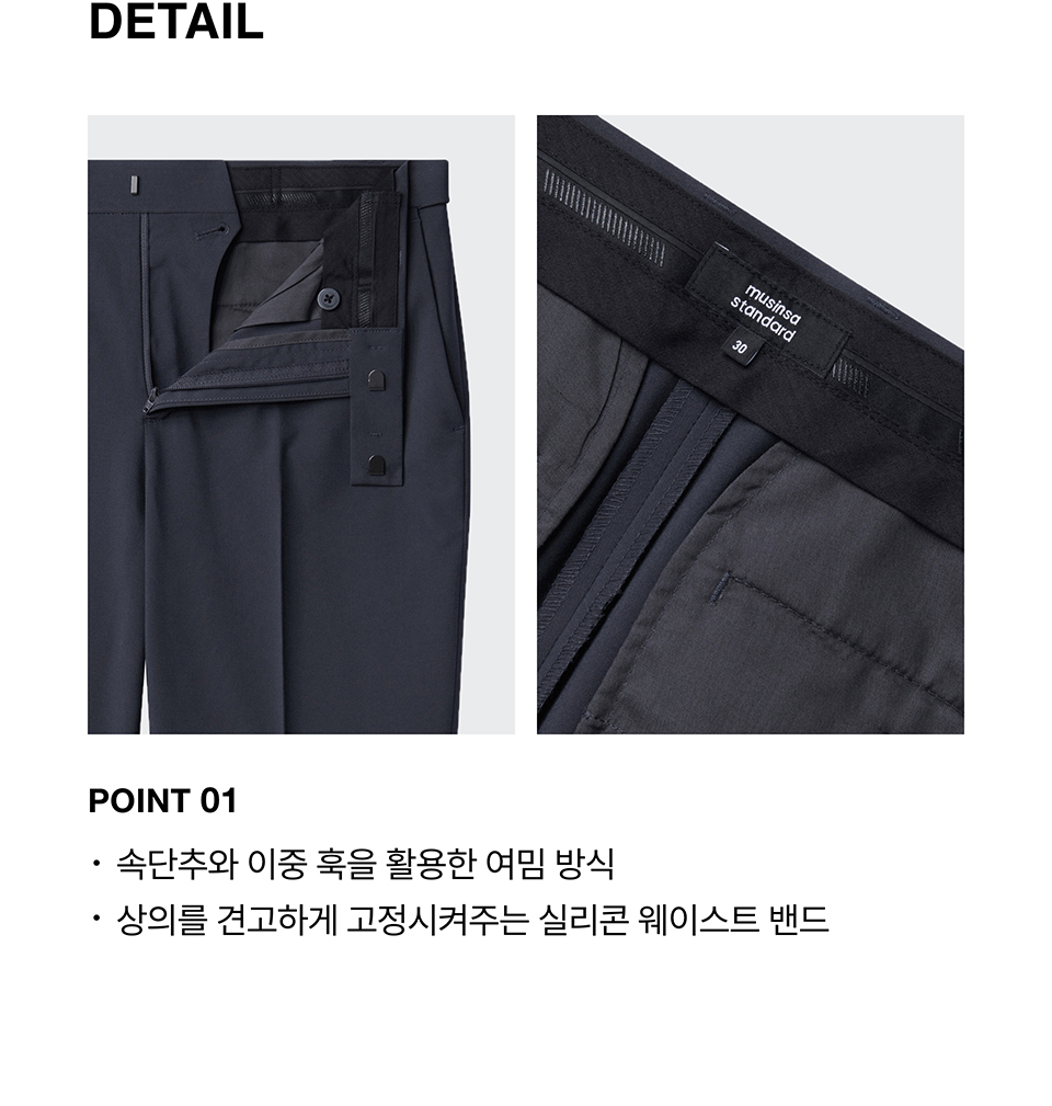 릴렉스드 테이퍼드 히든 밴딩 크롭 슬랙스 [네이비]