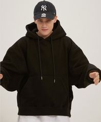 피치스킨 벌룬오버 후드 - 블랙
