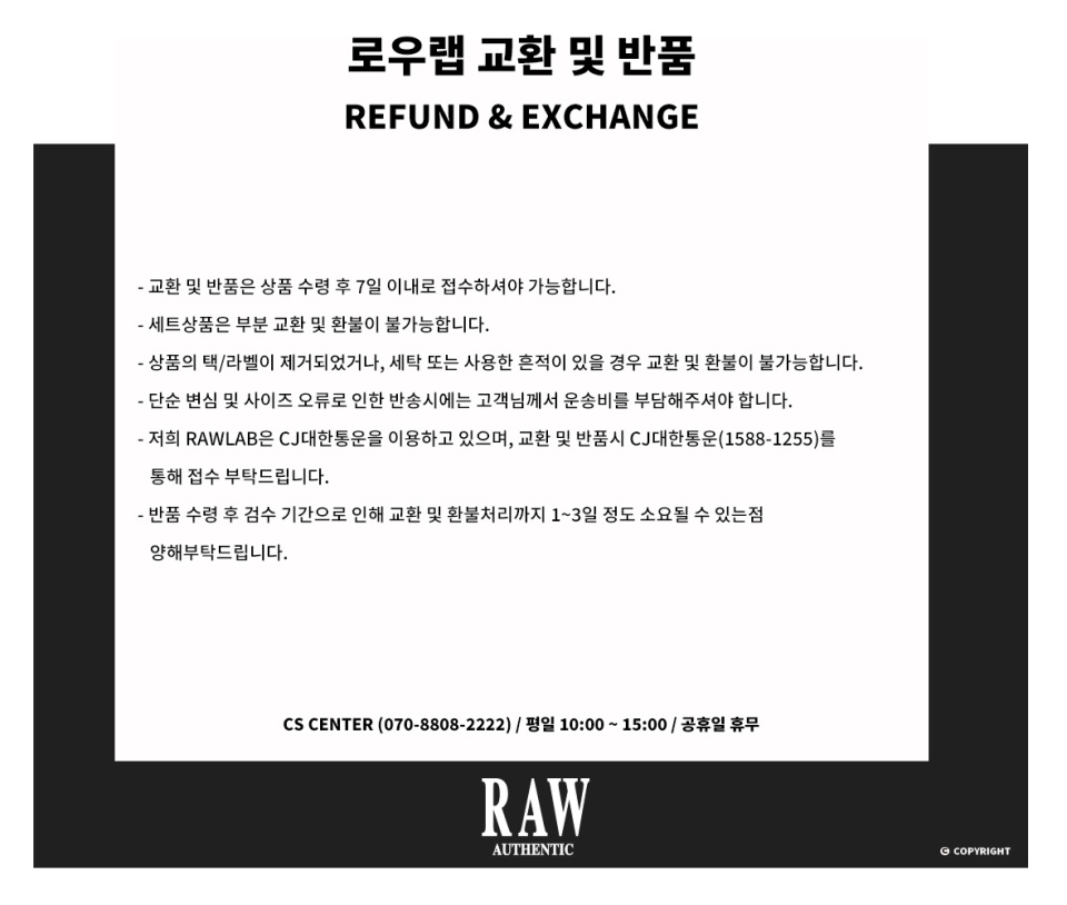 로우랩(RAW LAB)은 본래의 것을 흐름에 어긋나지 않되 좀 더 자유롭게 재해석하여 디자인한다는 뜻을 가집니다. 간결한 실루엣과 스트릿 무드의 시티보이 룩을 지향하며 현대적인 컨템포러리 룩을 제안합니다.