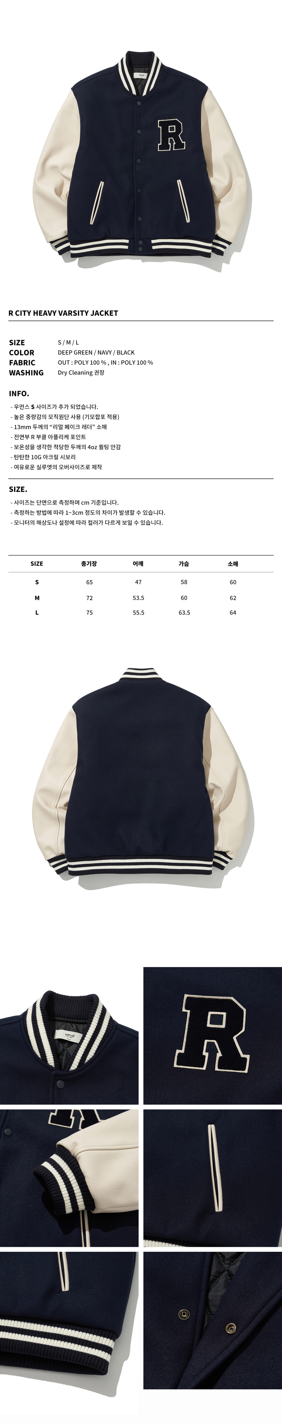 R 시티 헤비 바시티자켓 (네이비)