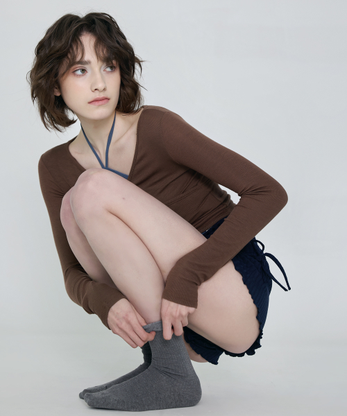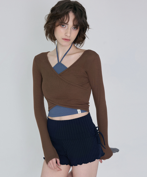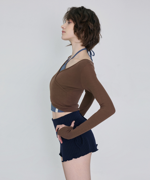 여성 요가복 DEVI-T0041-브라운 필라테스 커브 랩 크롭티