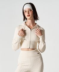 우먼스 케이블 니트 크롭 후디 집업 (Ivory)