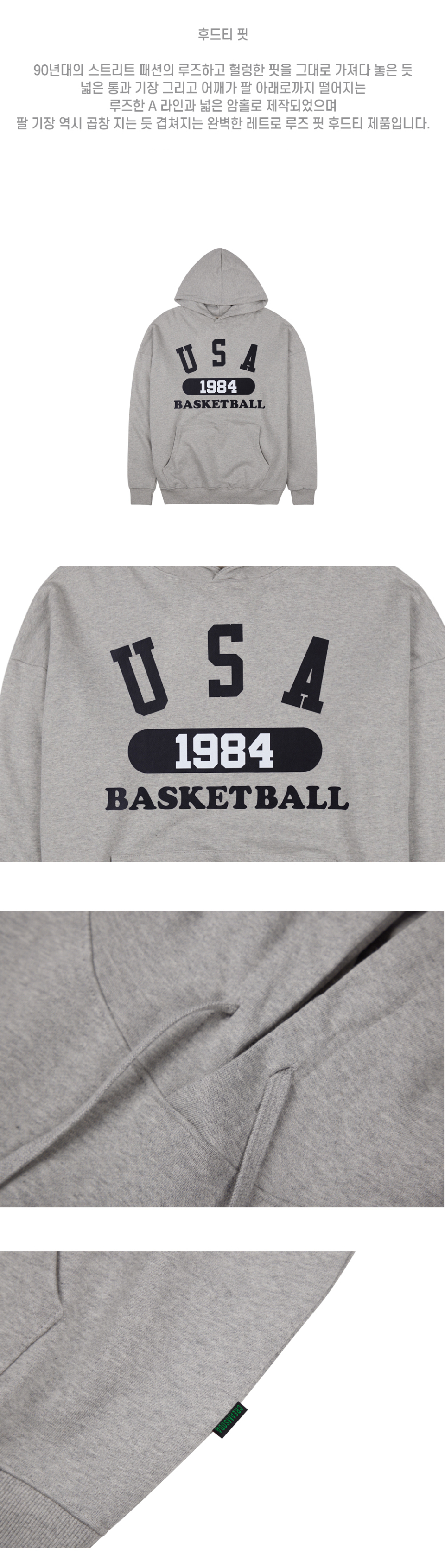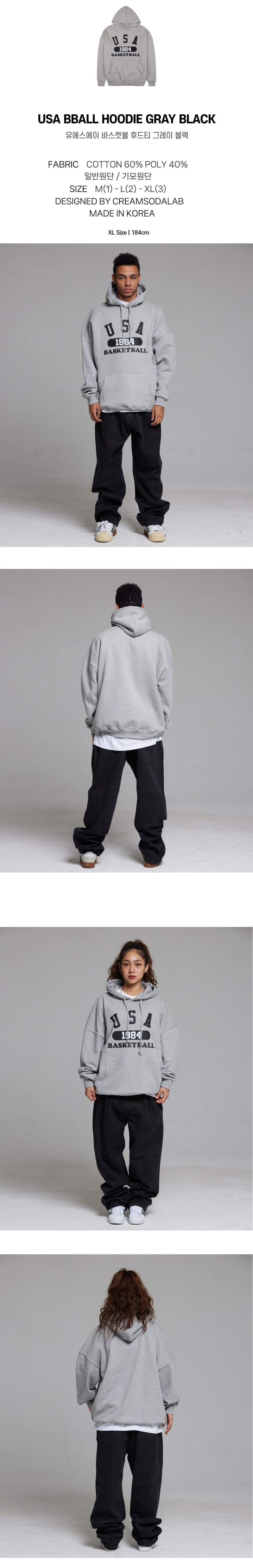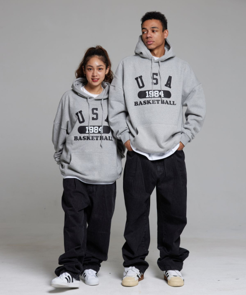유에스에이 바스켓볼 후드티 그레이 블랙