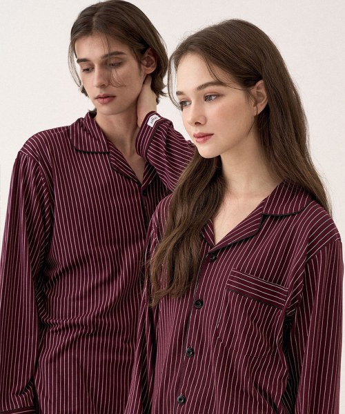 실크핏 웬즈데이 긴팔 커플 잠옷 세트