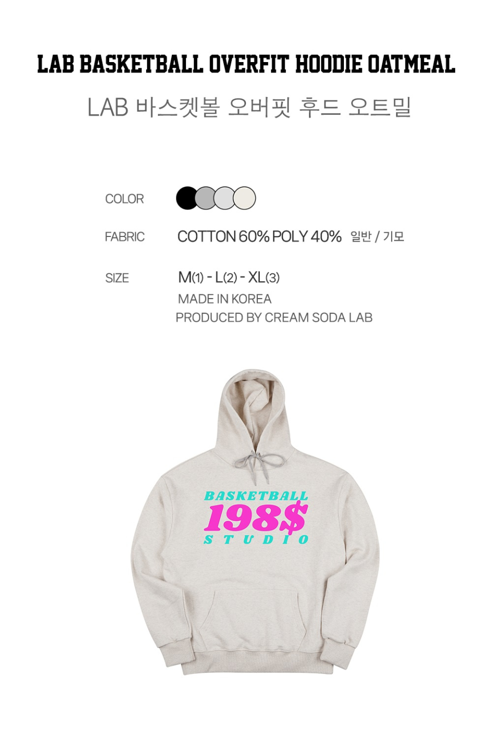 LAB 바스켓볼 오버핏 후드 오트밀