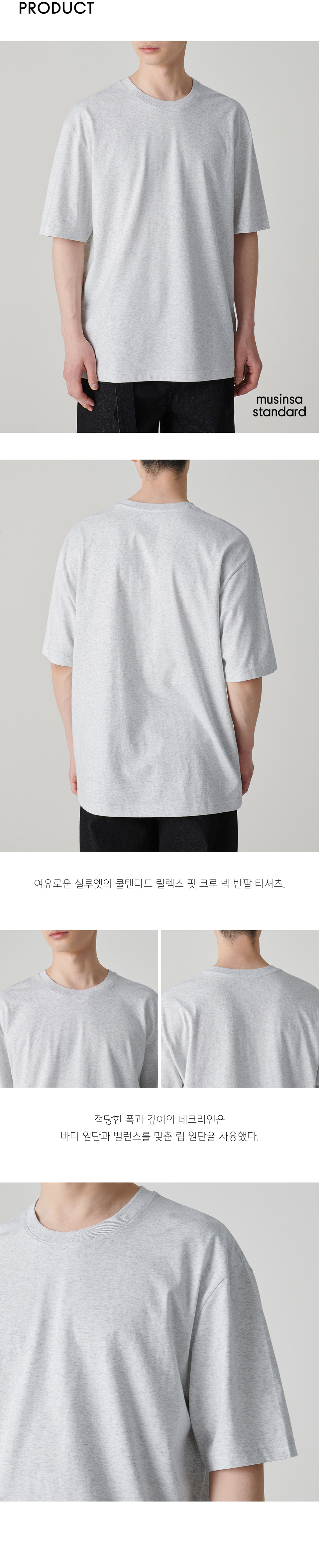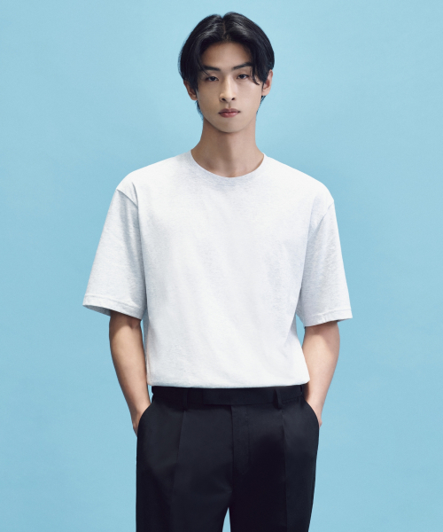 [쿨탠다드] 릴렉스 핏 크루 넥 티셔츠 [멜란지 라이트 그레이]