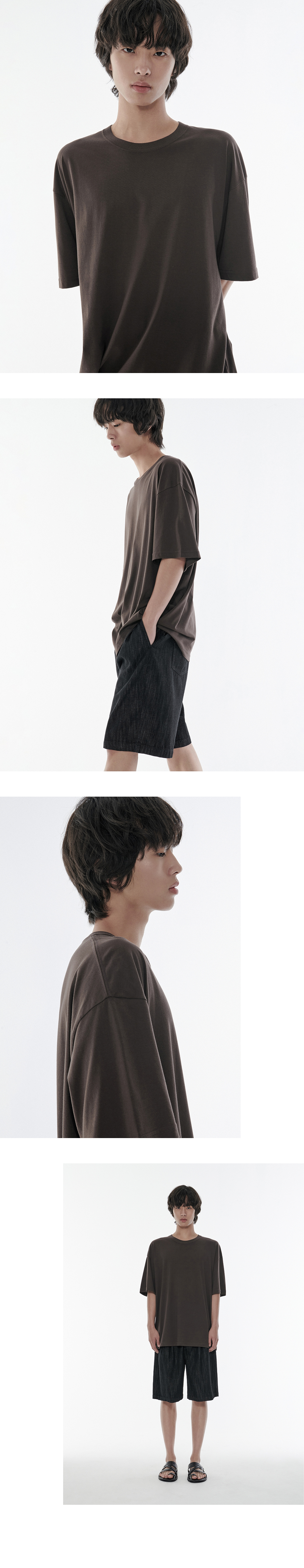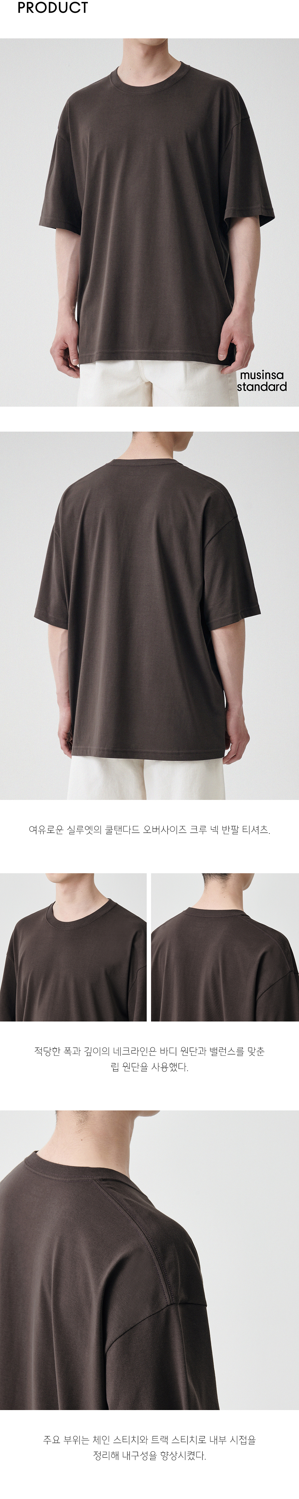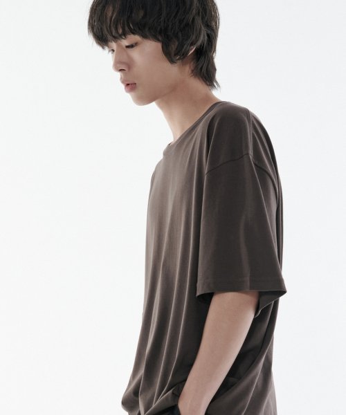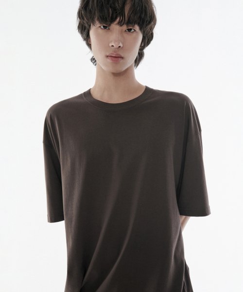 [쿨탠다드] 오버사이즈 크루 넥 티셔츠 [다크 브라운]