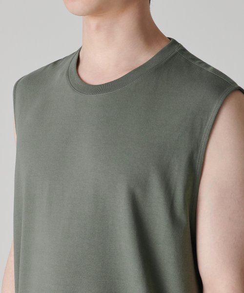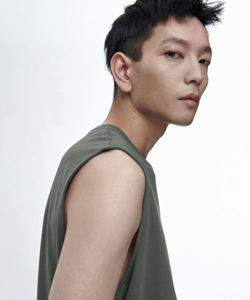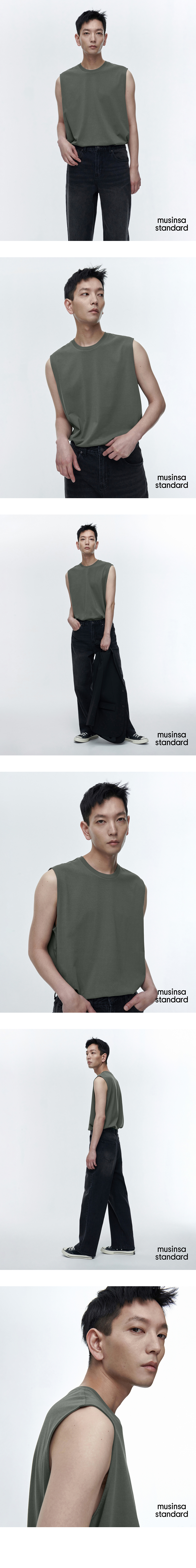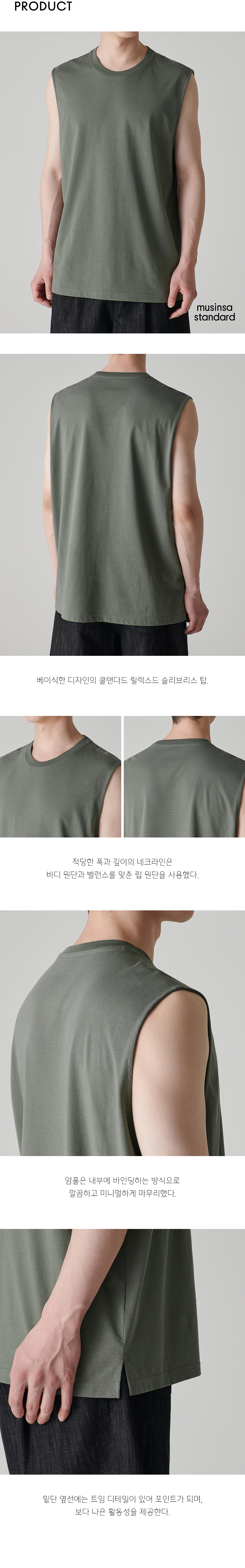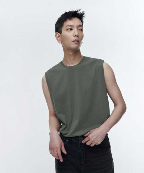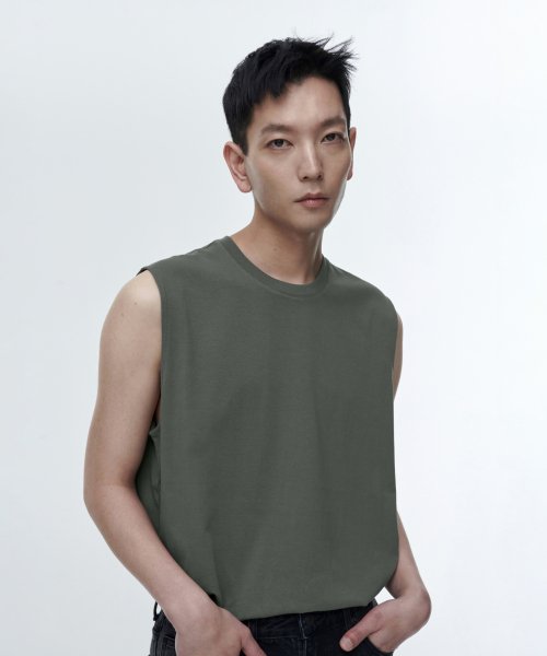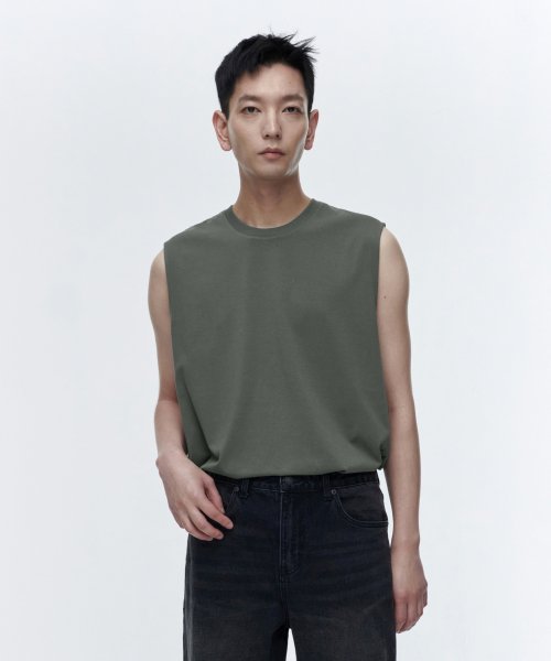 [쿨탠다드] 릴렉스드 슬리브리스 탑 [라이트 카키]