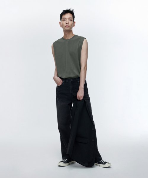 [쿨탠다드] 릴렉스드 슬리브리스 탑 [다크 그레이]