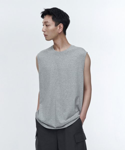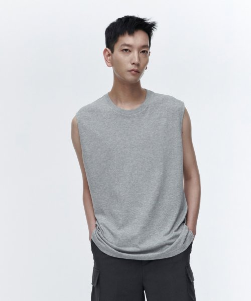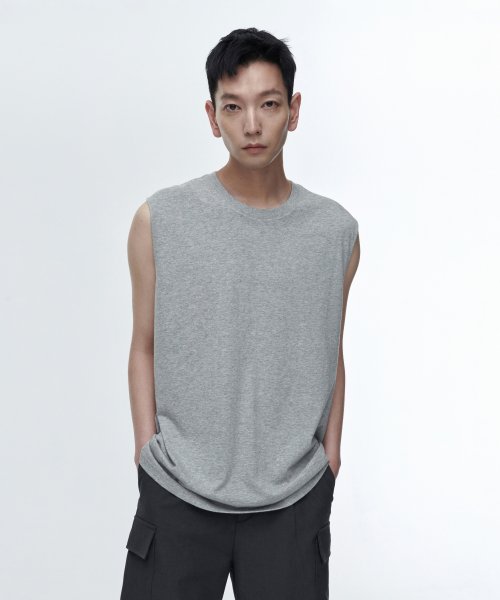 [쿨탠다드] 릴렉스드 슬리브리스 탑 [미디엄 그레이]