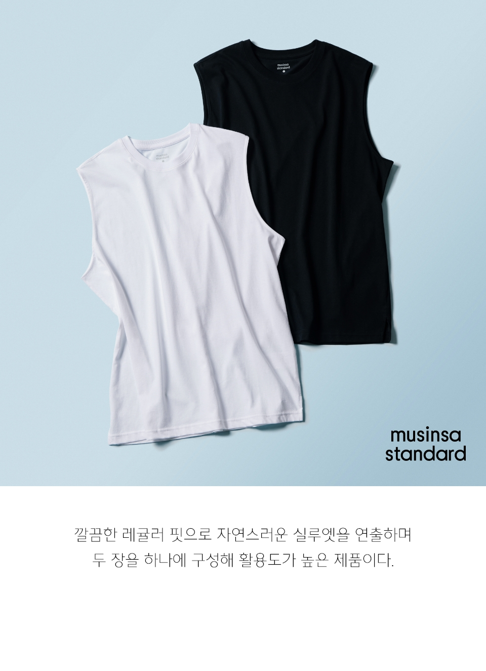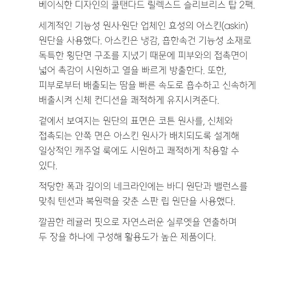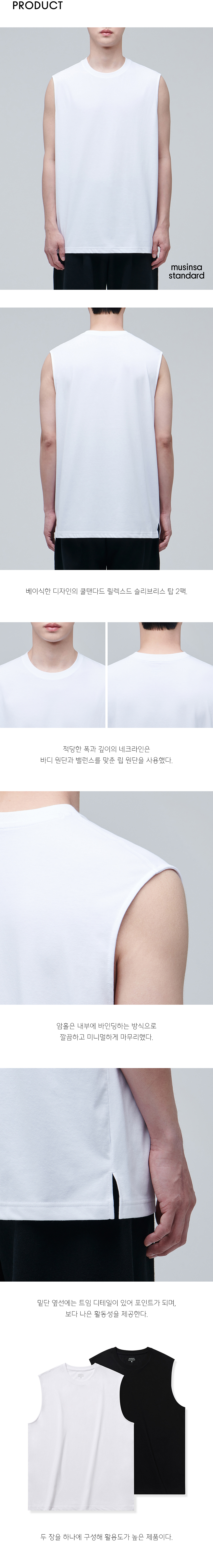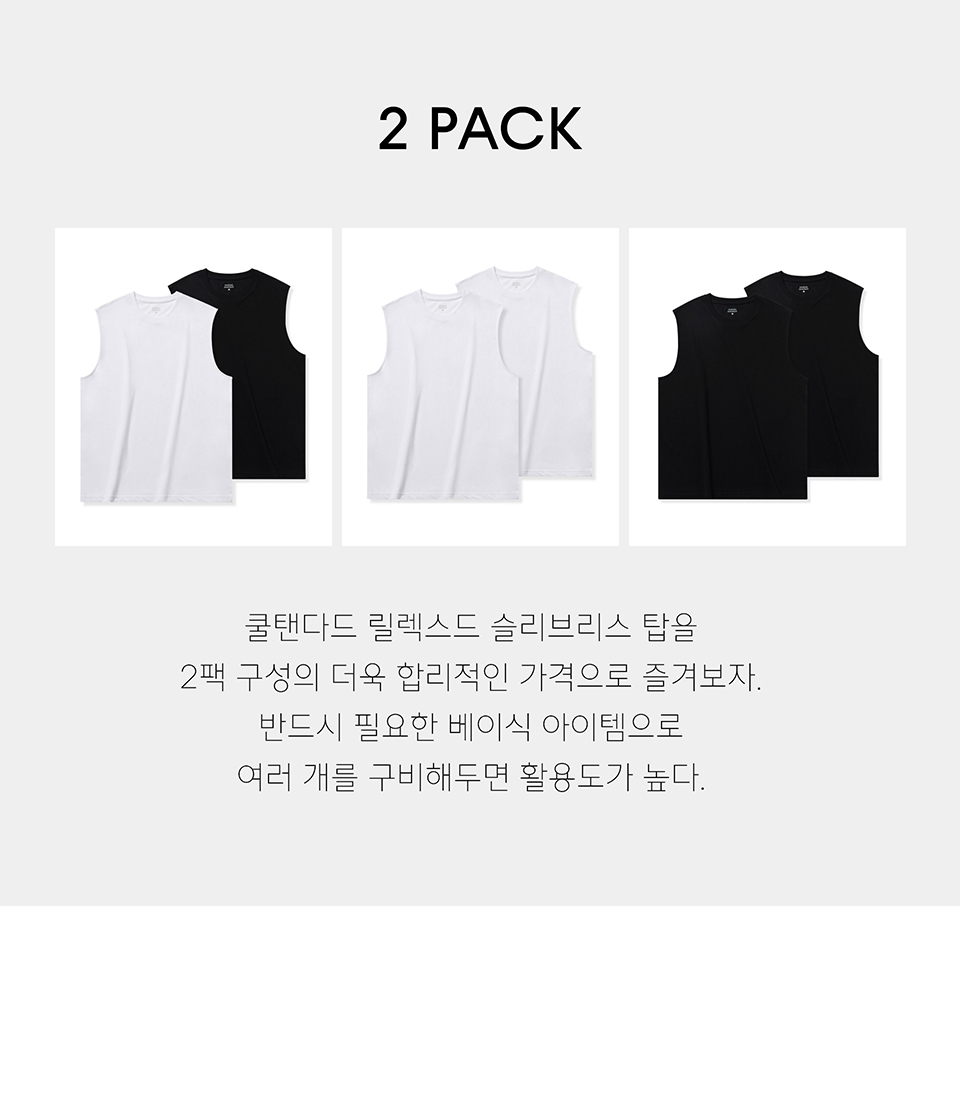 [쿨탠다드] 릴렉스드 슬리브리스 탑 2팩