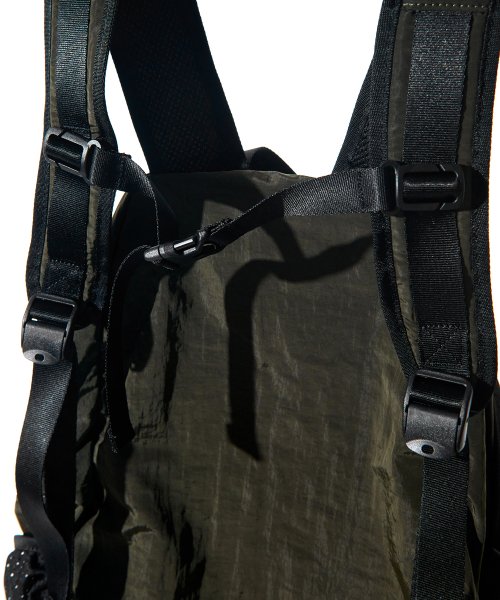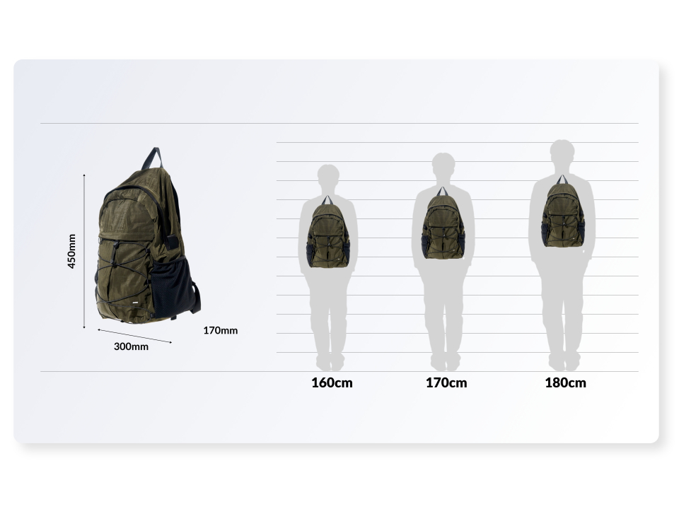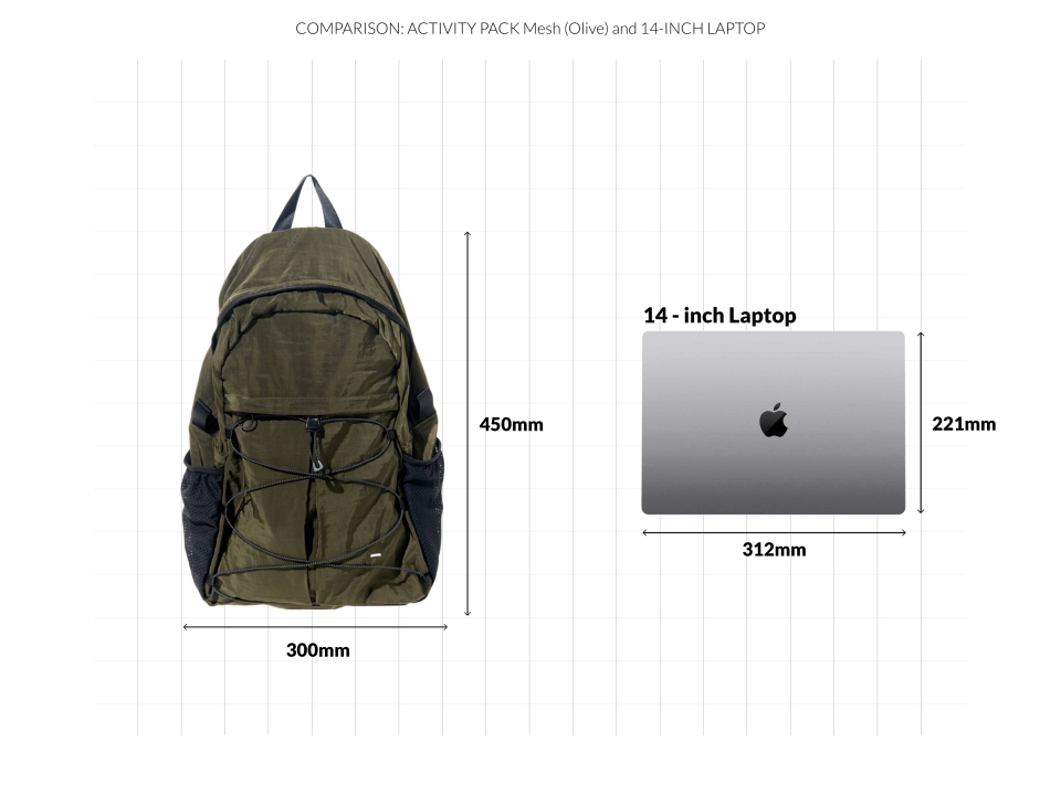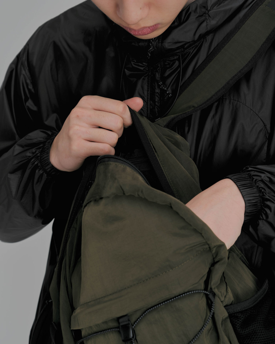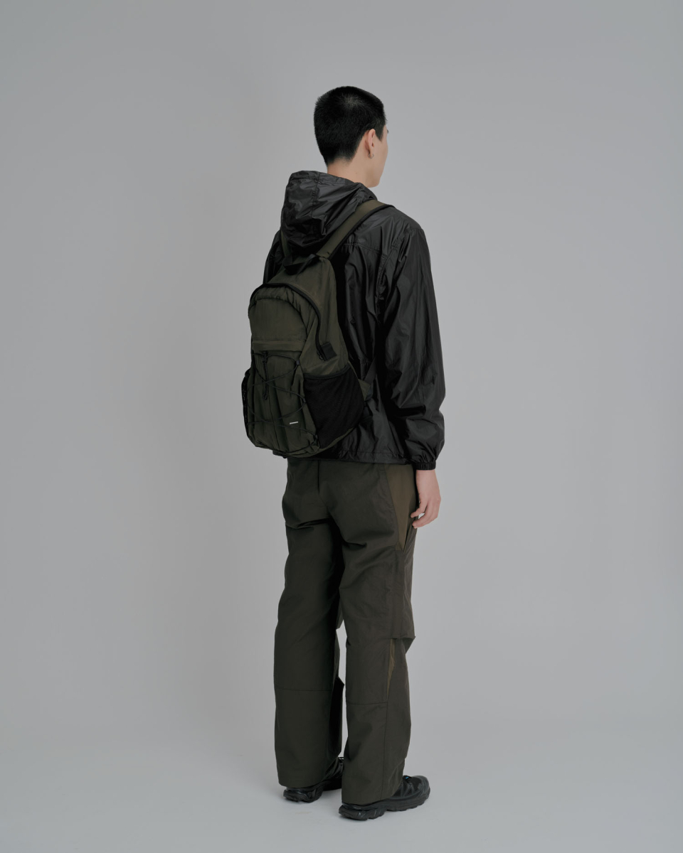 '액티비티 팩'의 메쉬 버전으로 출시된 가방입니다. 기존 제품과 다르게 양 측면 포켓과 내부 메인 포켓이 메쉬 원단으로 변경되었습니다. 각이 잡혀 있지 않고 의도적으로 흘러내리는 듯한 실루엣을 연출한 가방입니다. 등판과 포켓 부분을 제외하고 안감 및 보강재 없이 홑겹의 원단으로 제작하여 가볍고 유연한 것이 특징입니다. 가볍고 유연한 가방의 몸판 소재에 맞게 메쉬 원단 역시 부드러우며 밀도가 있는 원단을 사용했습니다. 특히 올리브 컬러는 광택 코팅 가공을 통해 은은하고 고급스러운 광택감이 느껴지며 생활 발수가 가능합니다. 이번 메쉬 버전에서는 전면부에 위치한 플리츠 분량도 조절하여 포켓을 보다 더 여유롭게 사용할 수 있도록 하였고, 잠시 벗어둔 아우터나 카라비너와 같은 악세서리 등을 걸어둘 수 있는 스트링 소재도 변경됐습니다. 일반적인 E-스트링이 아닌 재귀반사 소재의 3M 스카치 스트링을 사용하여 기능적, 디자인적으로도 퀄리티가 우수한 제품입니다. 부피가 적어 캐리어나 메인 가방에 넣어두시고 여행지에서 서브백으로 활용하시기에도 좋습니다. 무엇보다 가벼운 액티비티나 등산, 트래킹 등 활동적인 상황에서 사용하기 알맞으며 체스트 버클과 웨빙 스트랩을 통해 몸에 밀착시켜 편안한 피팅감을 느끼실 수 있습니다. 오픈 TQ파츠를 사용하여 불필요한 경우, 체스트 버클은 탈착하실 수 있습니다. 내부에도 총 3개의 이너 포켓을 배치하여 크고 작은 다양한 소지품들을 효율적으로 수납할 수 있습니다. 스트랩의 안쪽에는 에어메쉬를 배치하여 어깨에서 쉽게 미끄러지지 않고 보다 더 안정적인 쿠셔닝을 느끼실 수 있습니다.