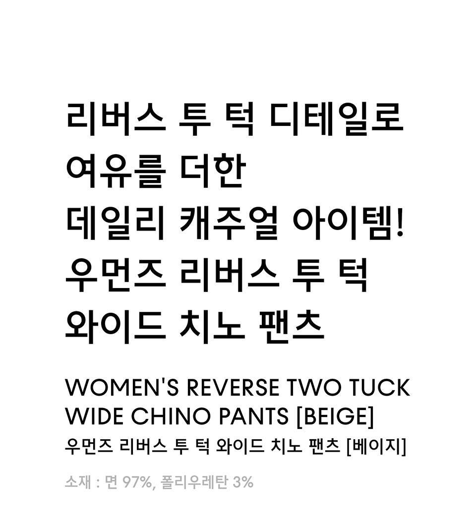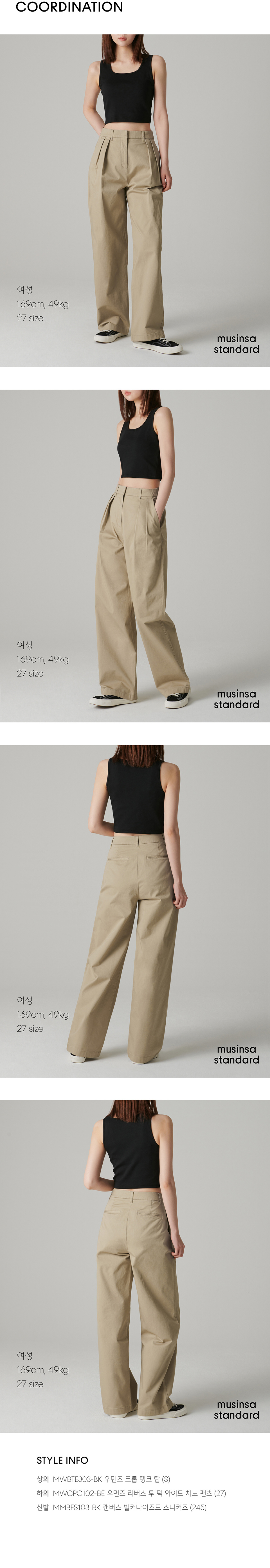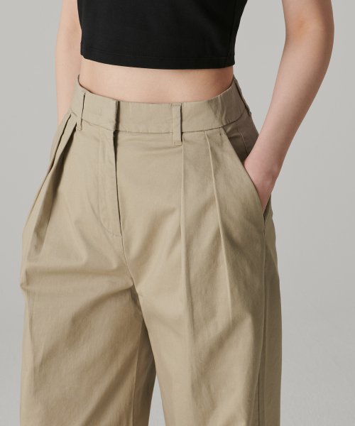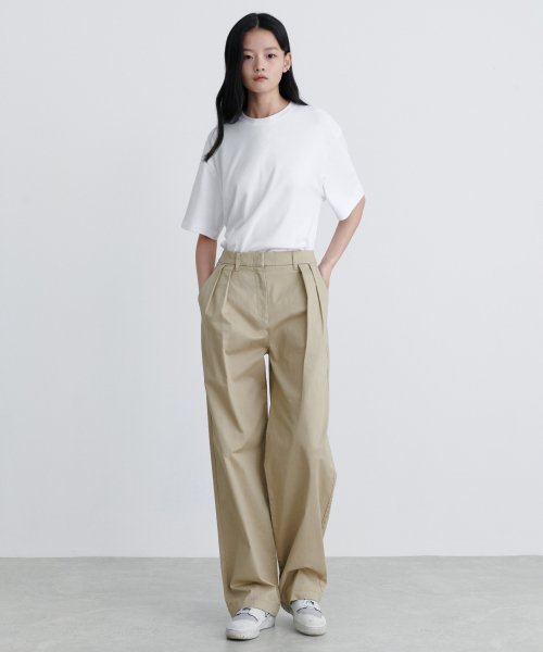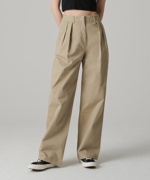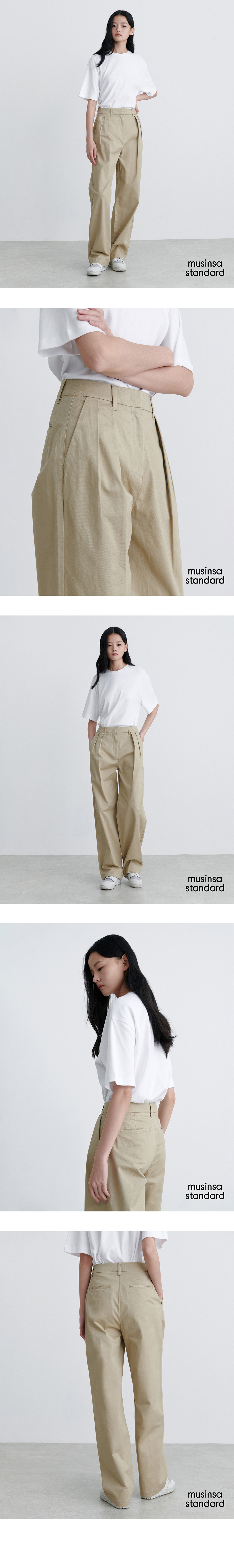 우먼즈 리버스 투 턱 와이드 치노 팬츠 [베이지]
