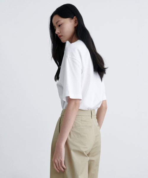 우먼즈 리버스 투 턱 와이드 치노 팬츠 [크림]