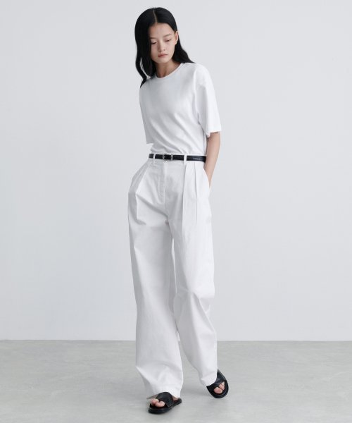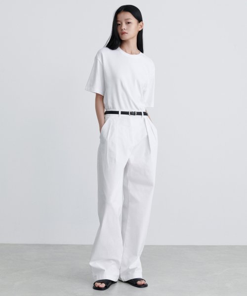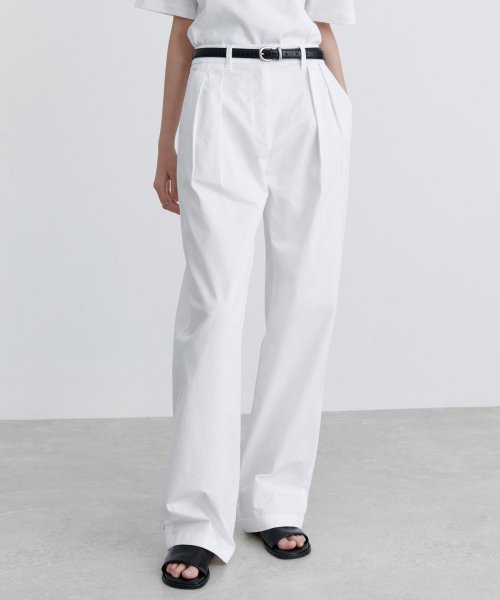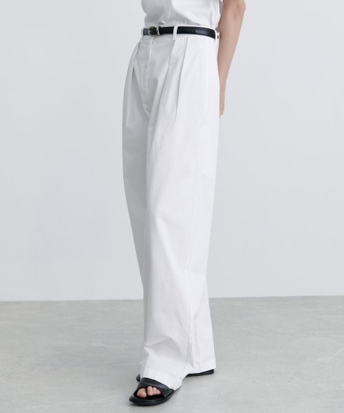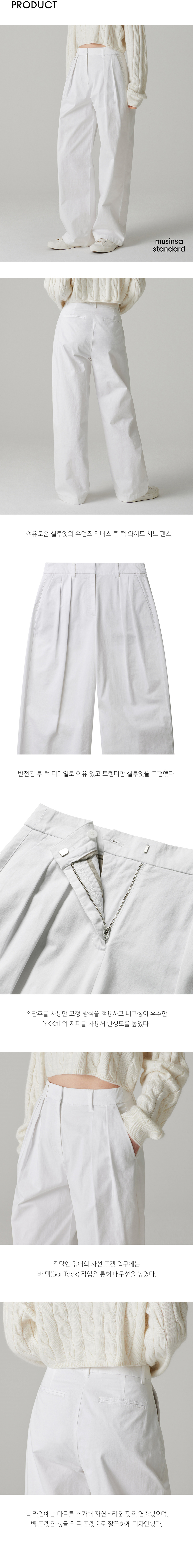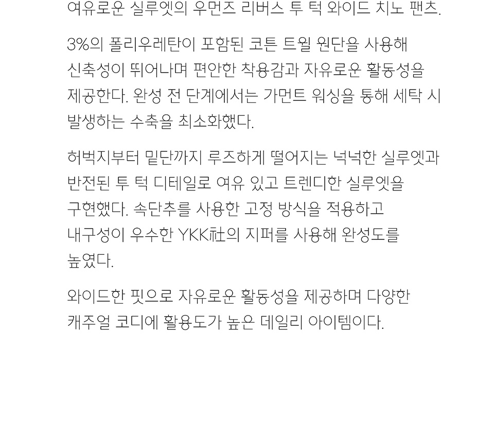 우먼즈 리버스 투 턱 와이드 치노 팬츠 [화이트]
