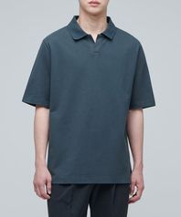 슬릿 넥 피케 폴로 셔츠 [터콰이즈]
