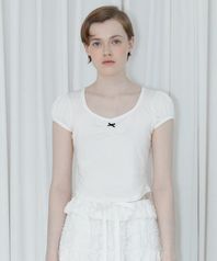 ROUND SHIRRING T-SHIRT (WHITE)