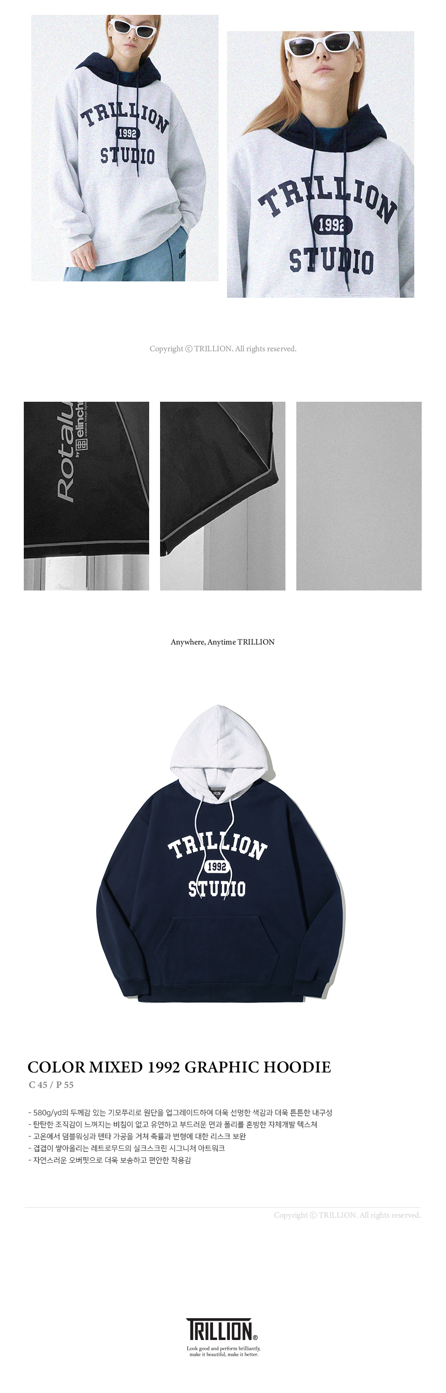 컬러 배색 1992 그래픽 후드 (NAVY)