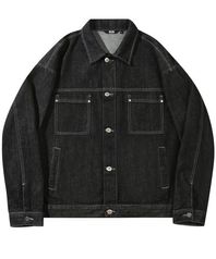 레더 패치 데님 카라 럭비 맨투맨_네이비