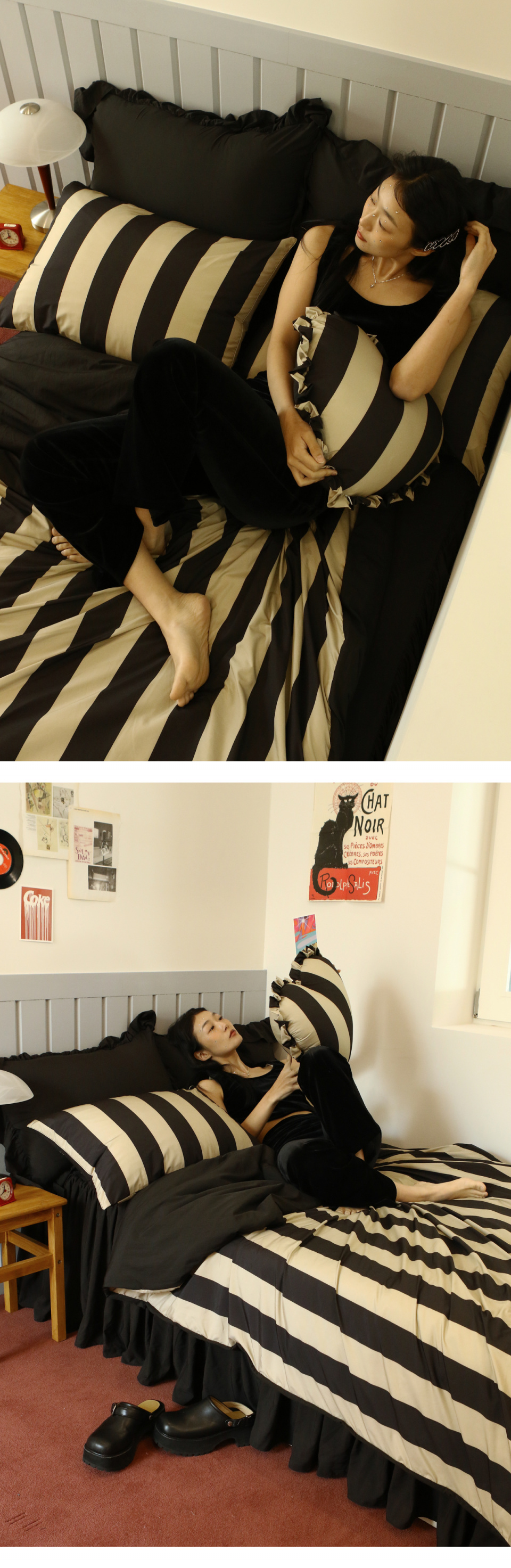 논더스트 워싱 블랙 볼드 스트라이프 이불커버