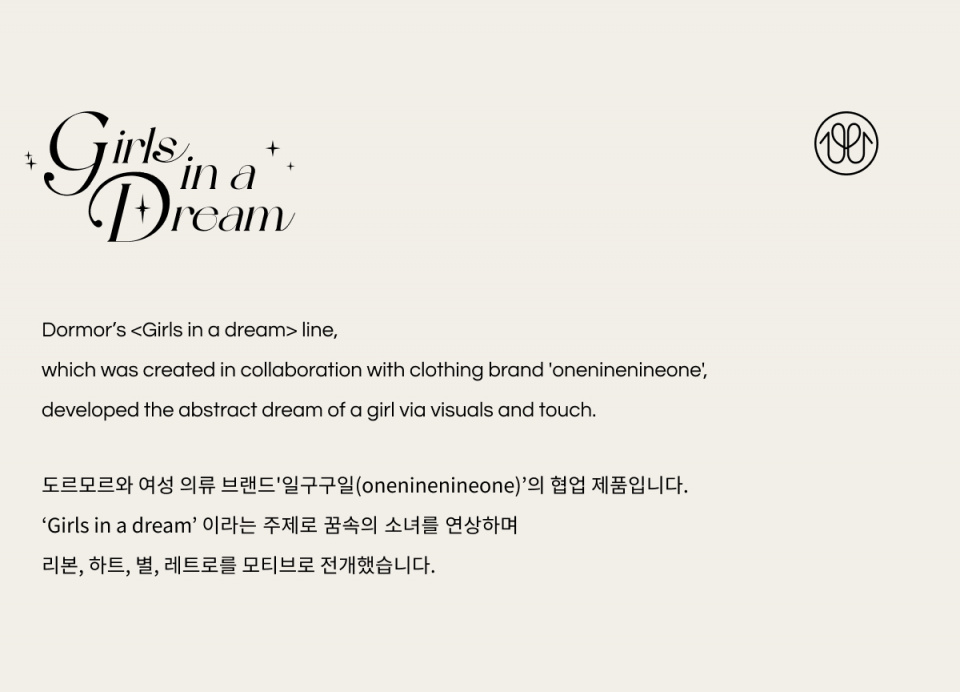 도르모르(DORMOR)는 `잠들다`라는 뜻의 `도르미르(dormir)`를 의미합니다. 수면과 관련된 모든 제품을 제작합니다. 30년 경력의 제조공장과 그래픽 디자이너의 협업으로 시작된 도르모르는 자체 공장에서 직접 생산&연구하여 편하고 좋은 원단으로 예쁜 이불을 선보입니다.