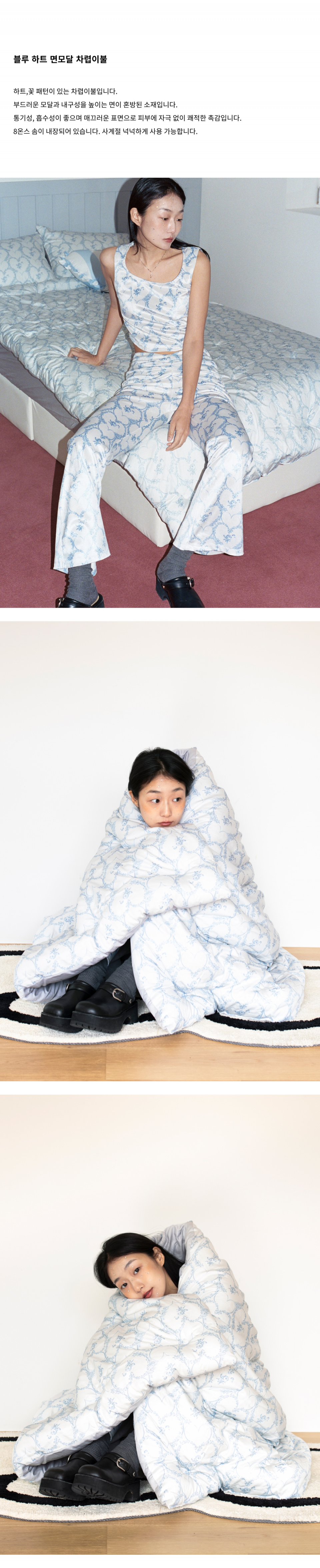 블루 하트 면모달 차렵이불