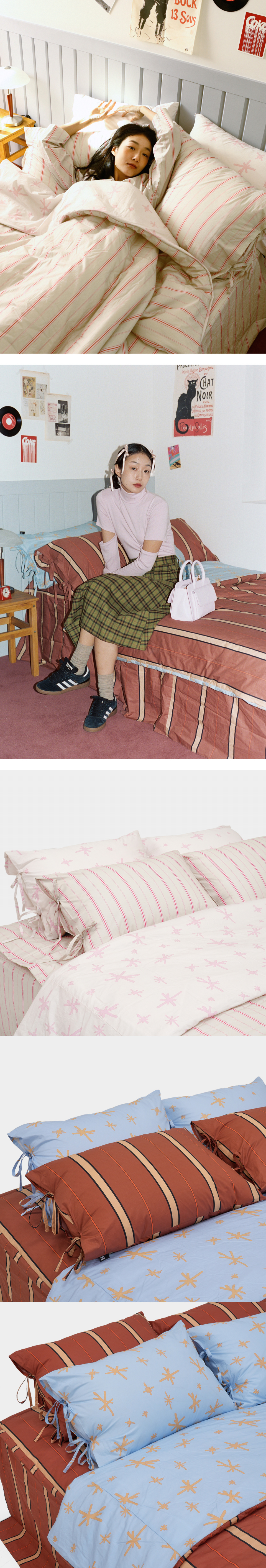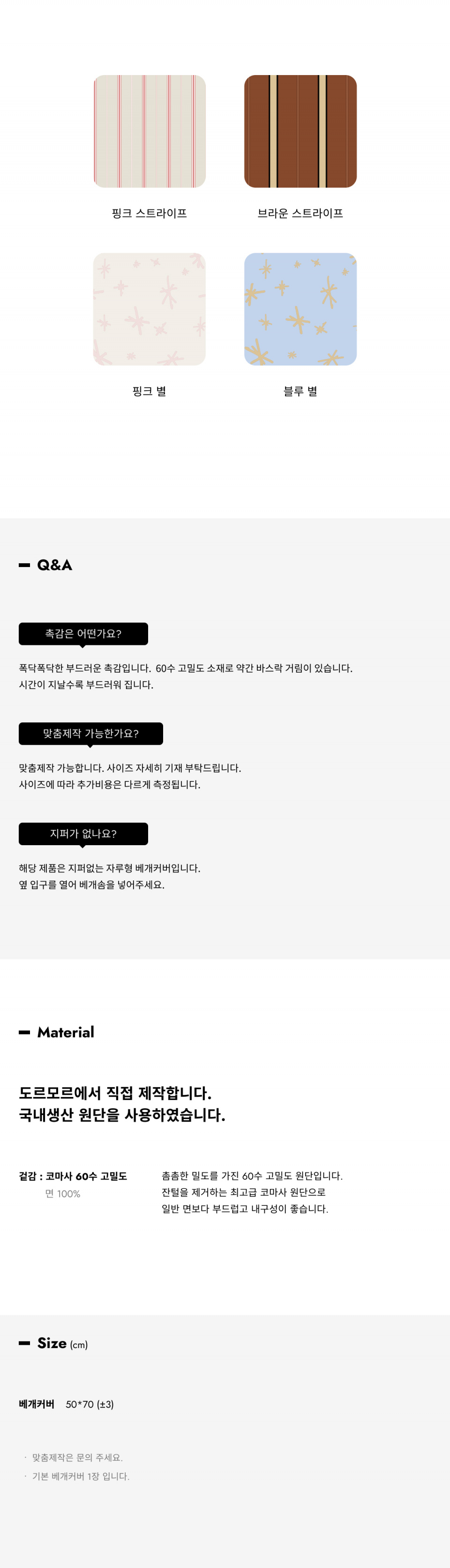 숨쉬는 부드러운 순면 도트 스트라이프 베개커버