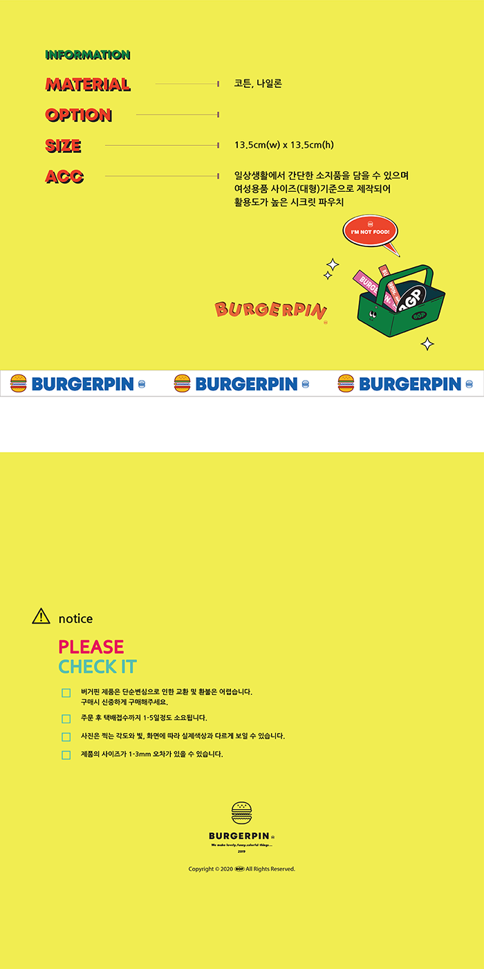 버거핀(BURGERPIN)은 러블리하고 퍼니한 일상 및 패션 소품과 디자인 아이템을 선보이는 브랜드입니다.