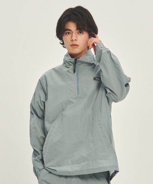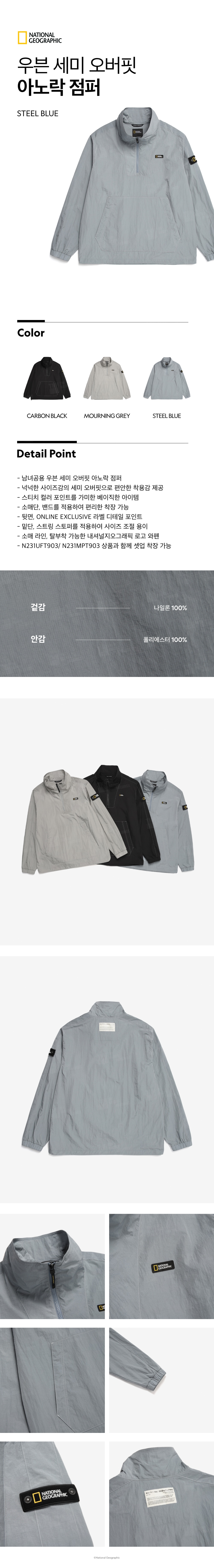 N231UJP902 우븐 세미 오버핏 로고 아노락 점퍼 STEEL BLUE