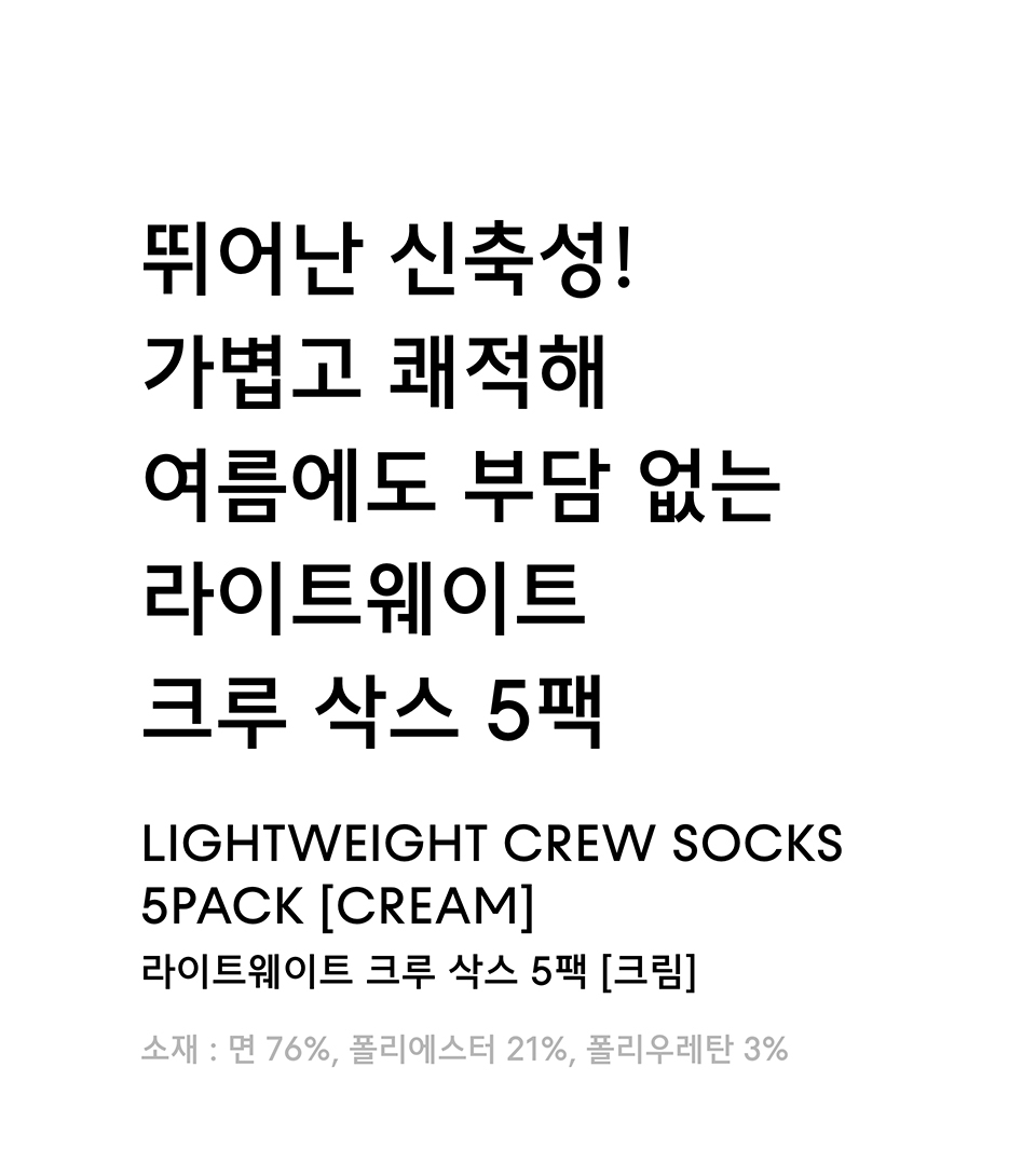 라이트웨이트 크루 삭스 5팩 [더스티 크림]