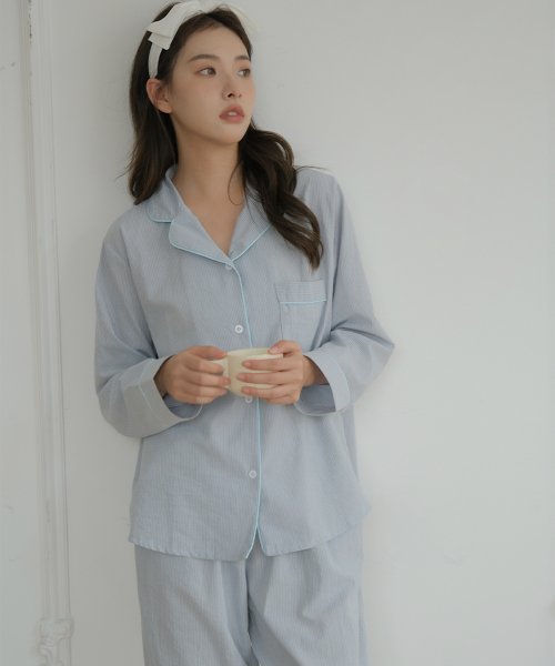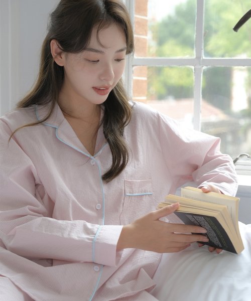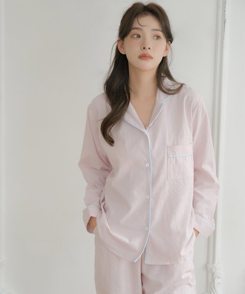 베이직 스트라이프 파자마 투피스_LAVENDER