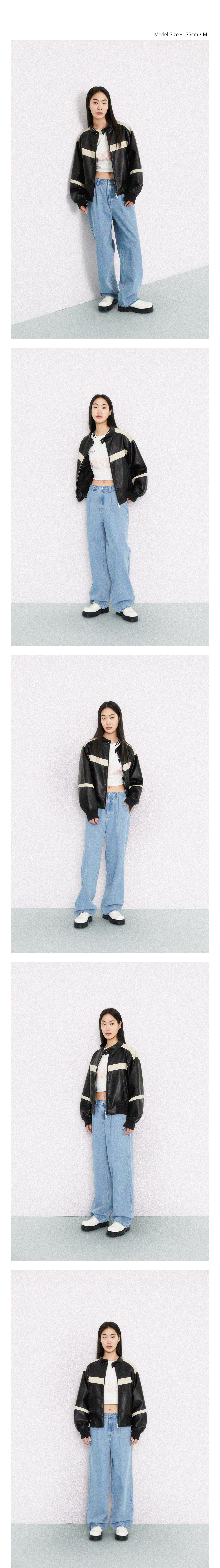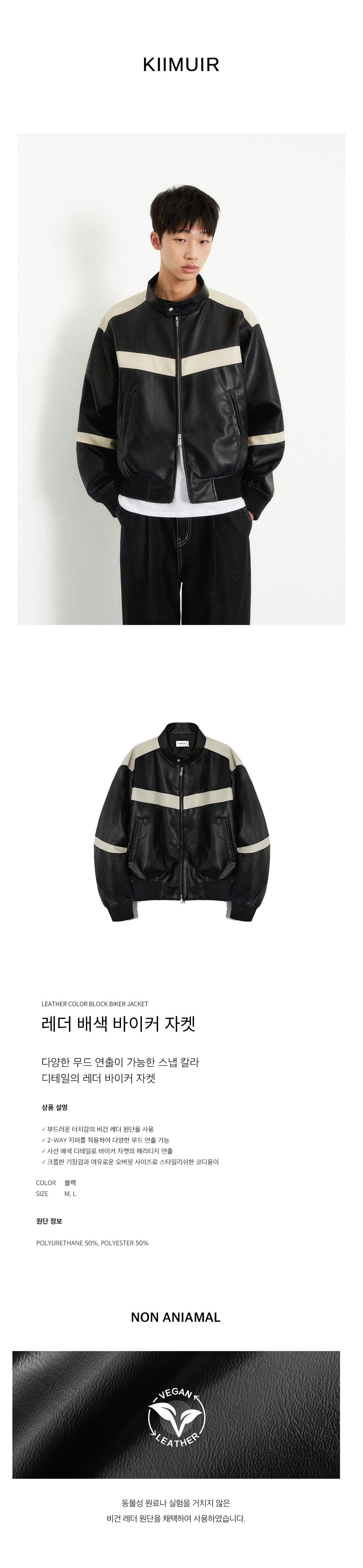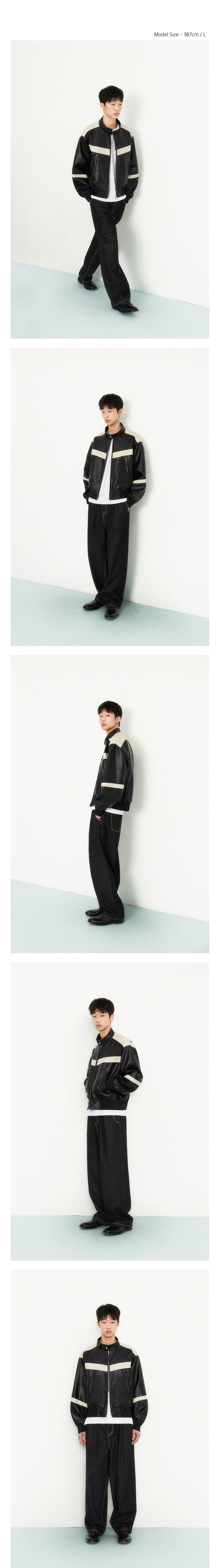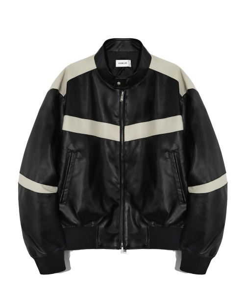 레더 배색 바이커 자켓_블랙