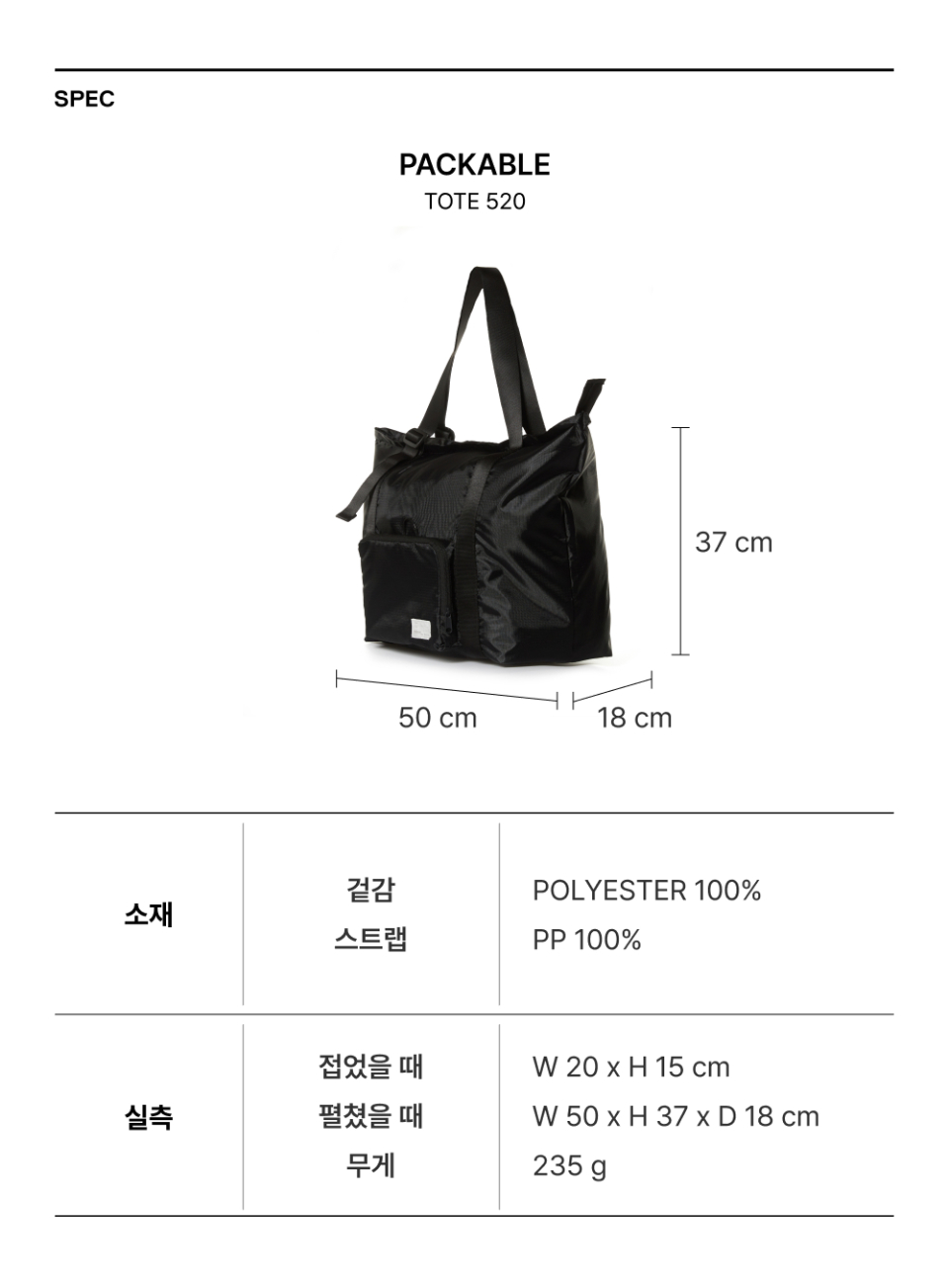패커블 토트백 520 Black
