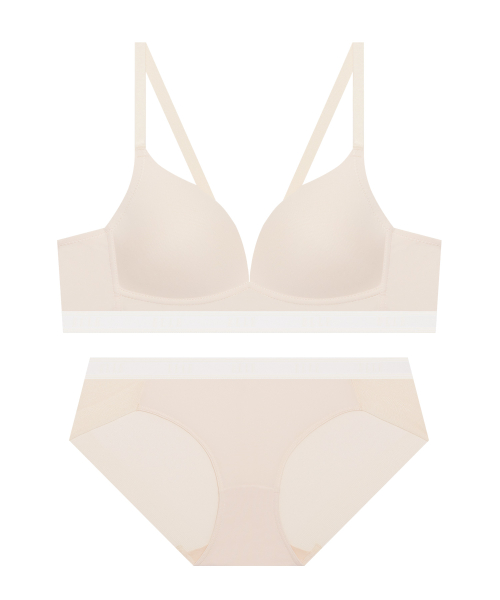 에어로쿨 컴포트핏 노와이어 브라 팬티 세트 - 크림
