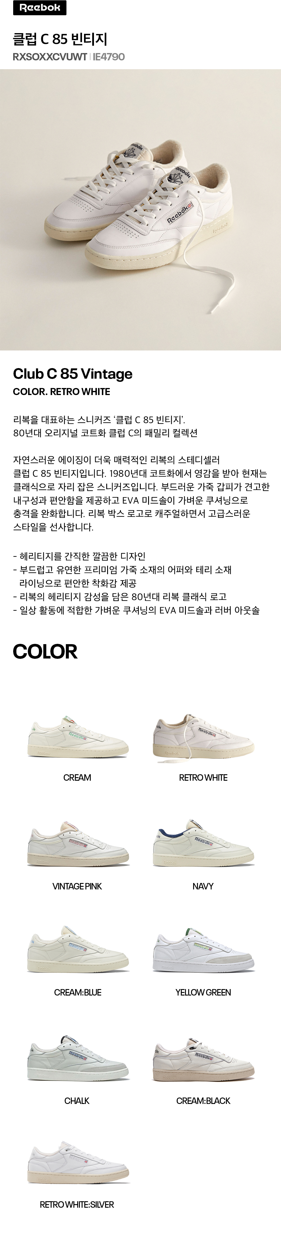 클럽 C 85 빈티지 - 레트로 화이트 / IE4790