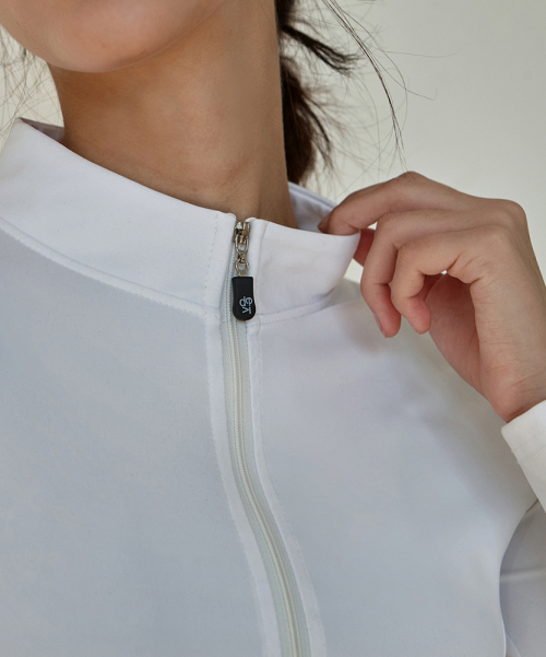 여성 요가복 DEVI-O0011-화이트 필라테스 베닛 하프넥 크롭 집업
