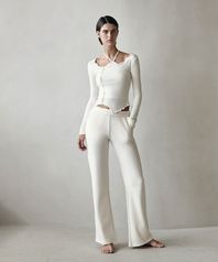 여성 요가복 DEVI-B0070-아이보리 필라테스 세미 부츠컷 밴딩 팬츠