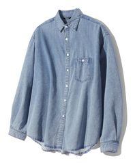 스톤 워싱 오버핏 데님 긴팔 셔츠 (BLEACH BLUE)