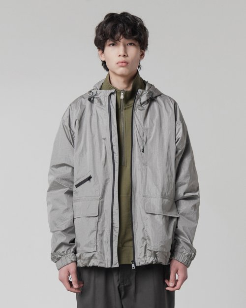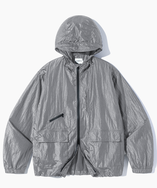 ASI 2WAY 나일론 메탈 후드 윈드브레이커 자켓_메탈 그레이