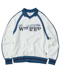 워크샵 라인 래글런 나일론 믹스 칼라드 스웨트셔츠 화이트