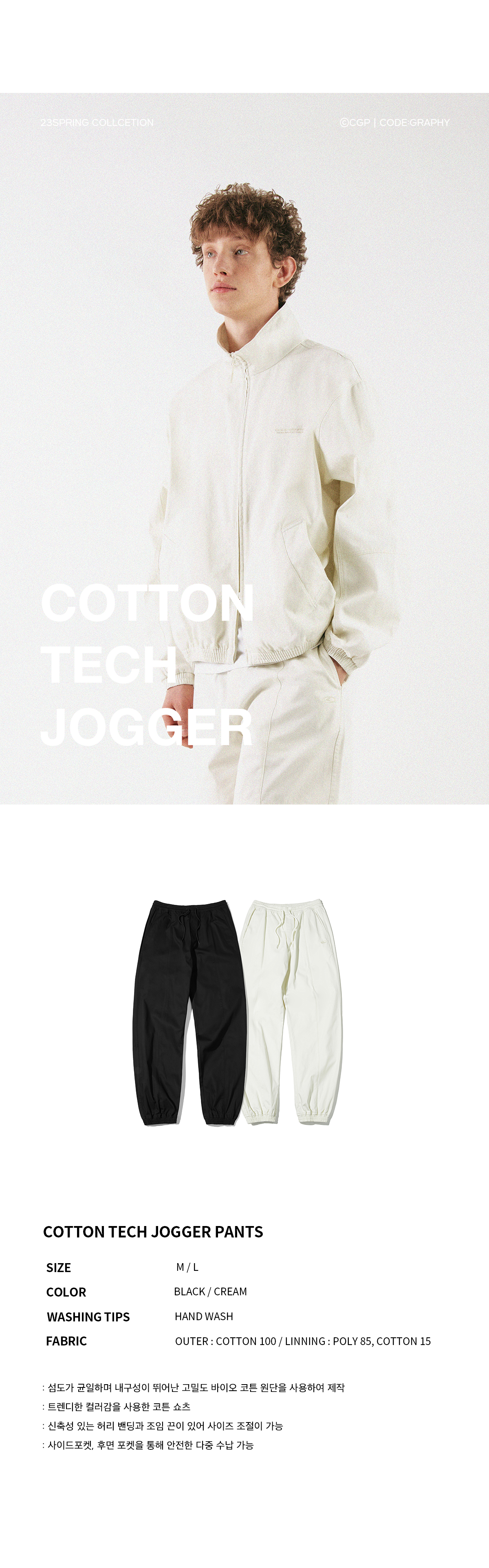 코튼 테크 조거 팬츠_블랙