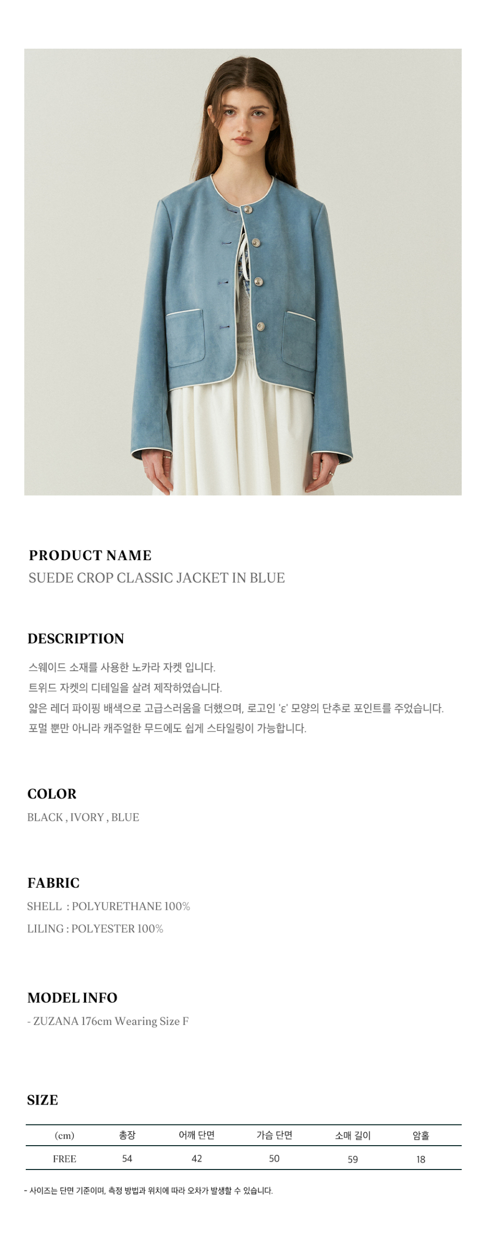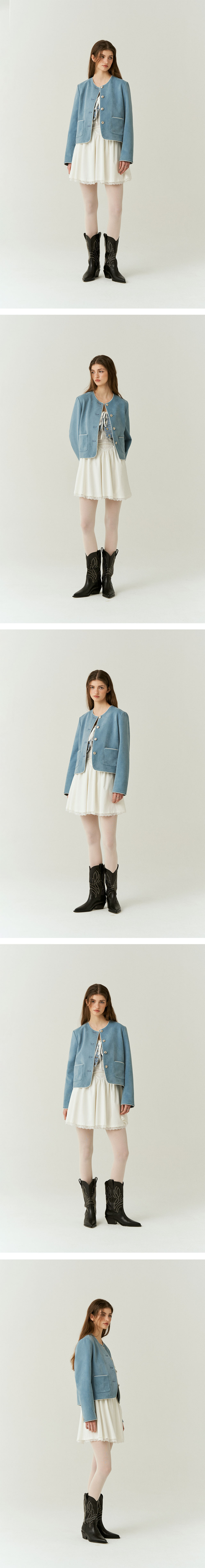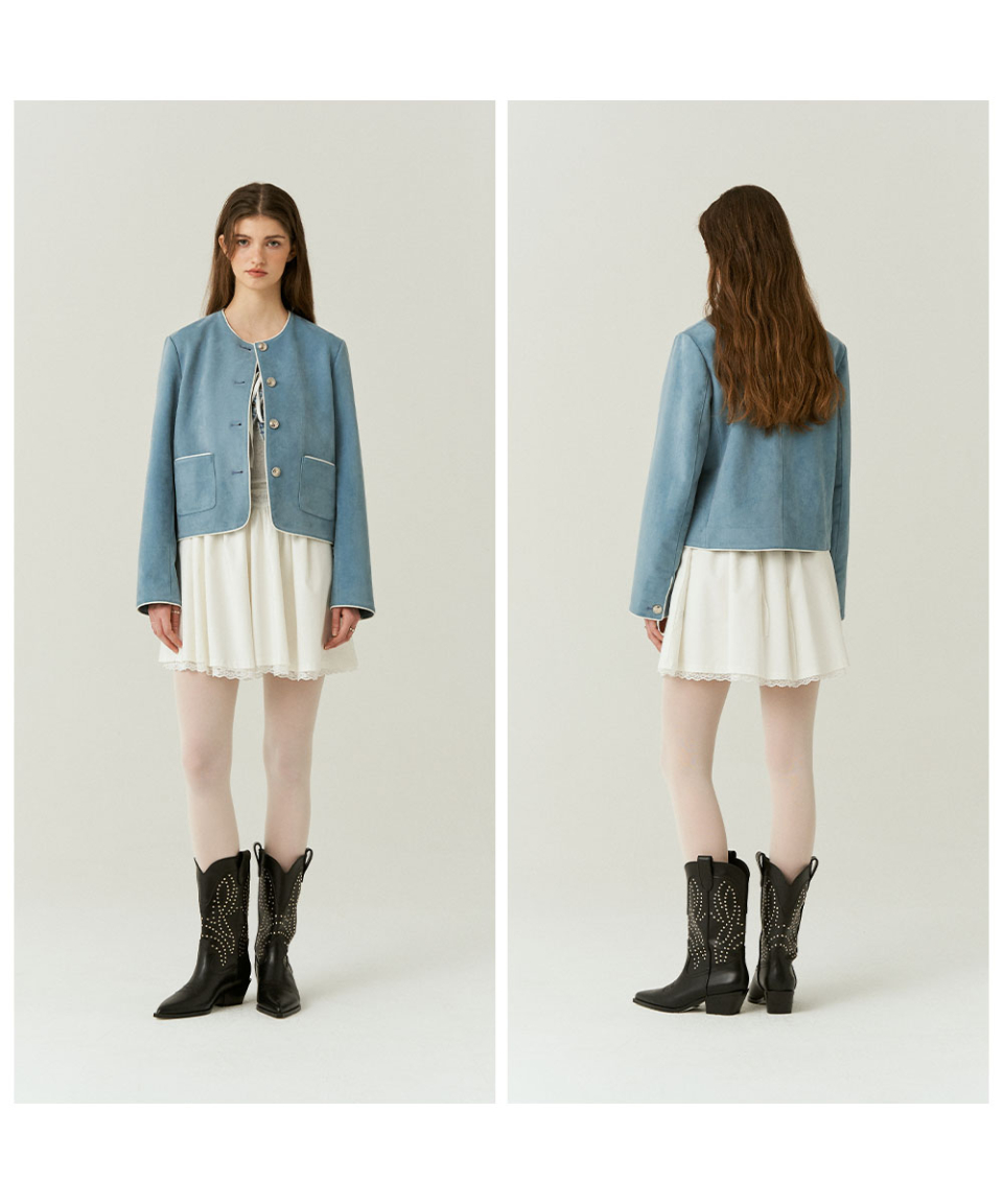 Suede Crop Classic Jacket in Blue