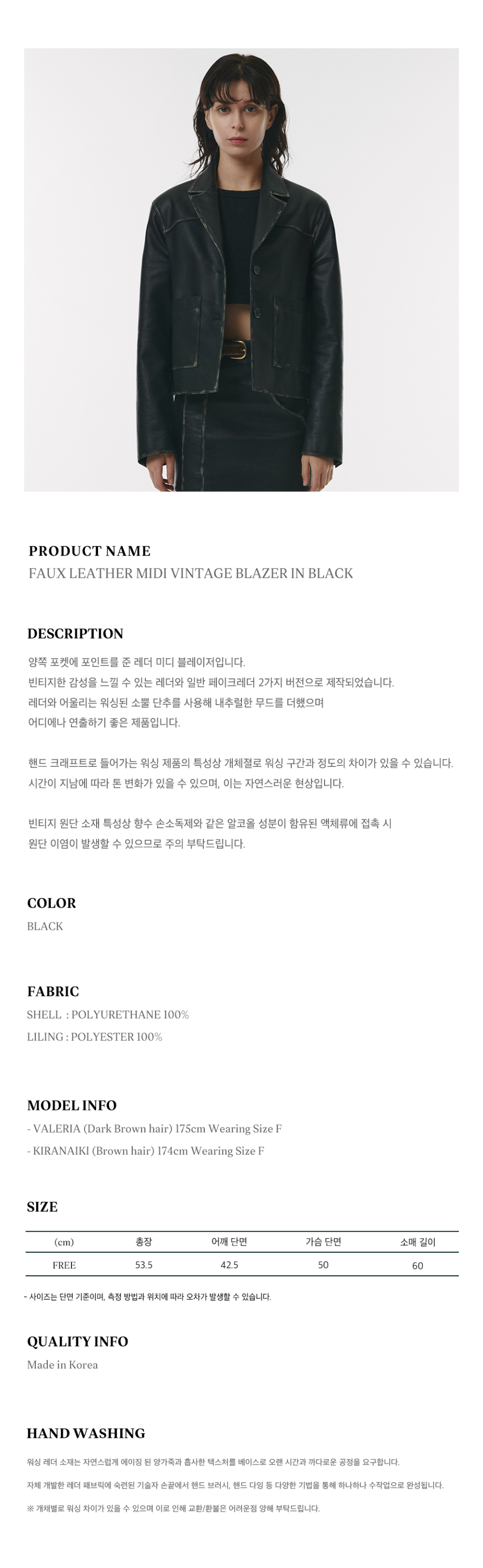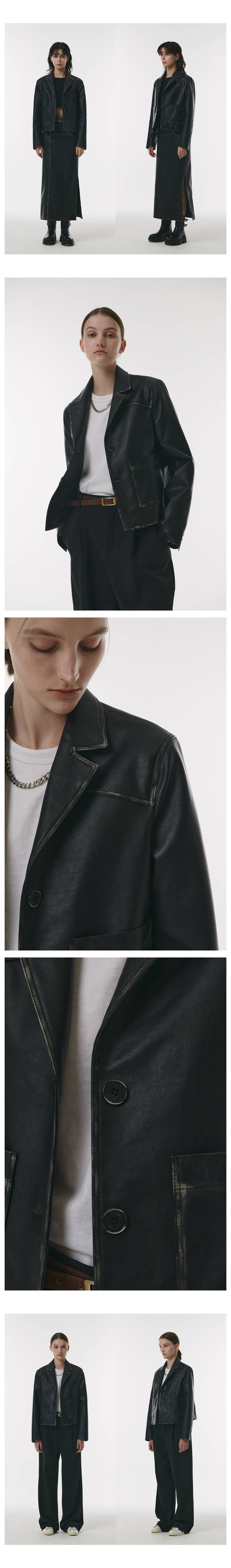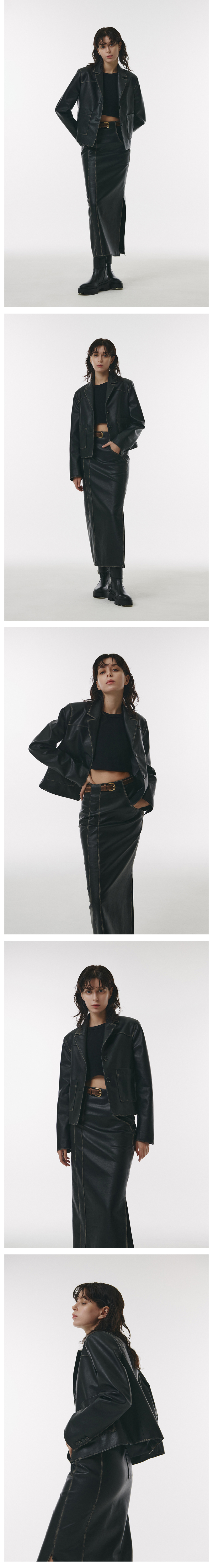 FAUX Leather Midi Vintage Blazer in Black