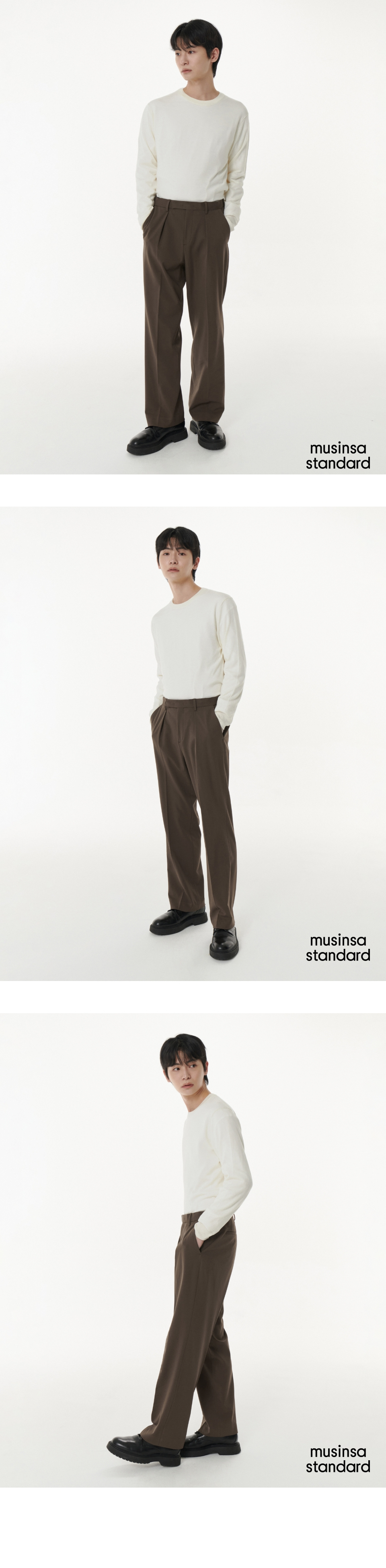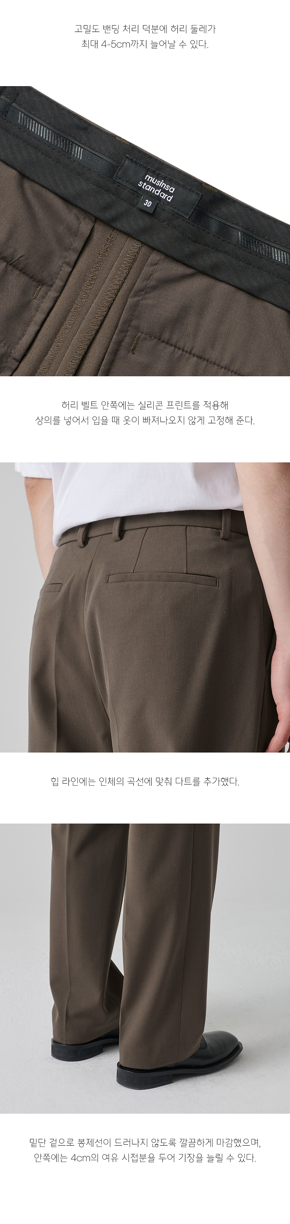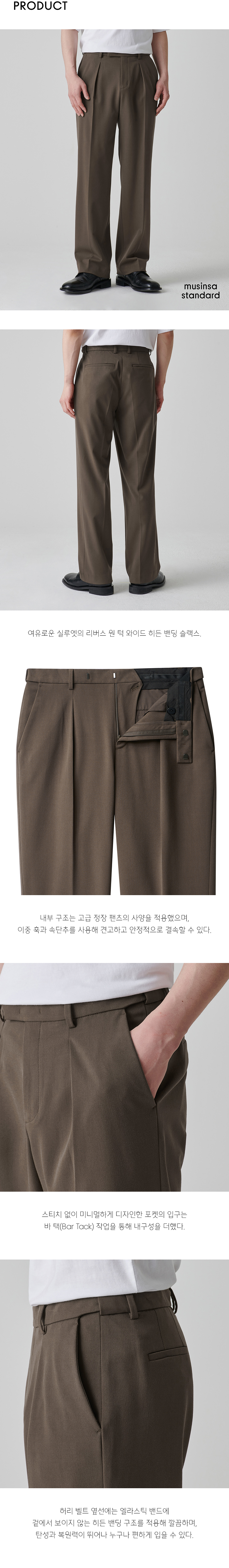 리버스 원 턱 와이드 히든 밴딩 슬랙스 [브라운]