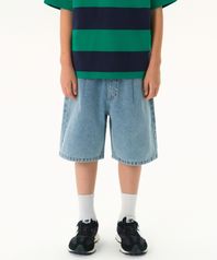 원 턱 와이드 데님 쇼츠 [라이트 인디고]