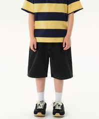원 턱 와이드 데님 쇼츠 [워시드 블랙]