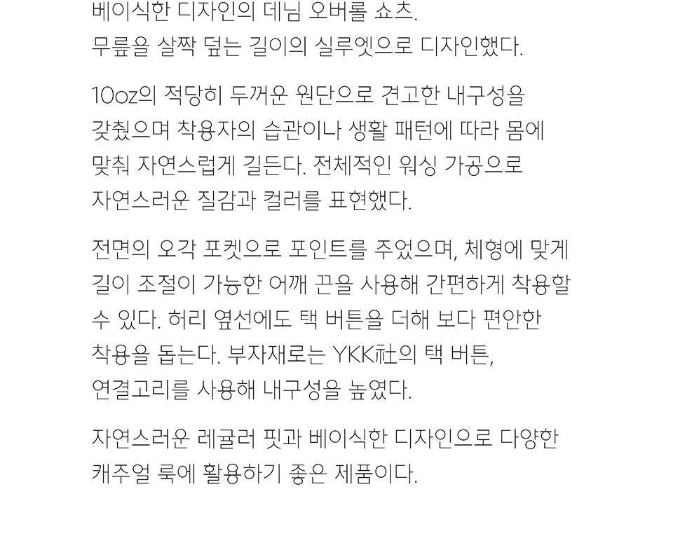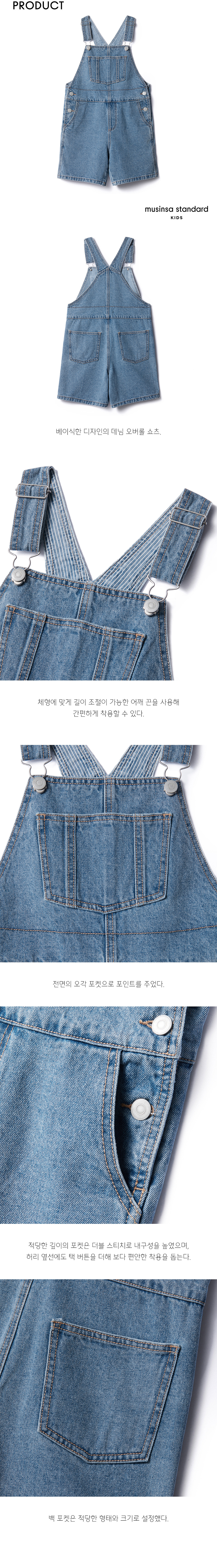 데님 오버롤 쇼츠 [라이트 인디고]