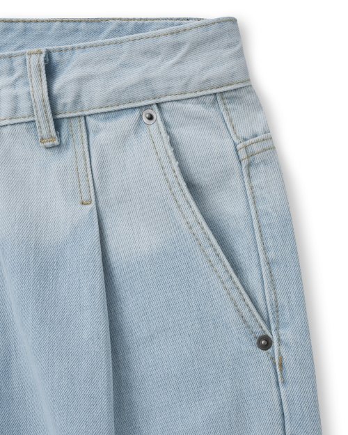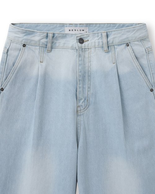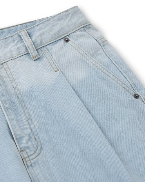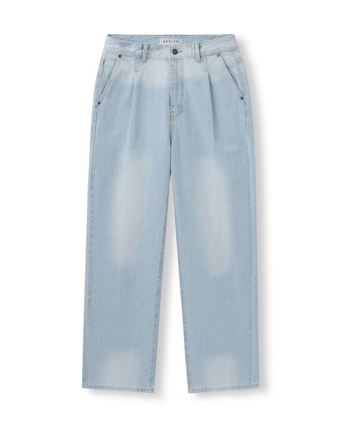 CONE MILL WASHED ONE TUCK DENIM PANTS WASHED SKY